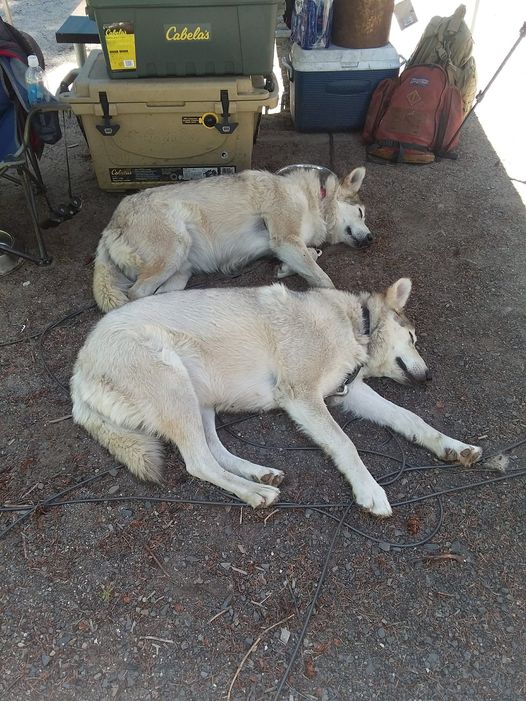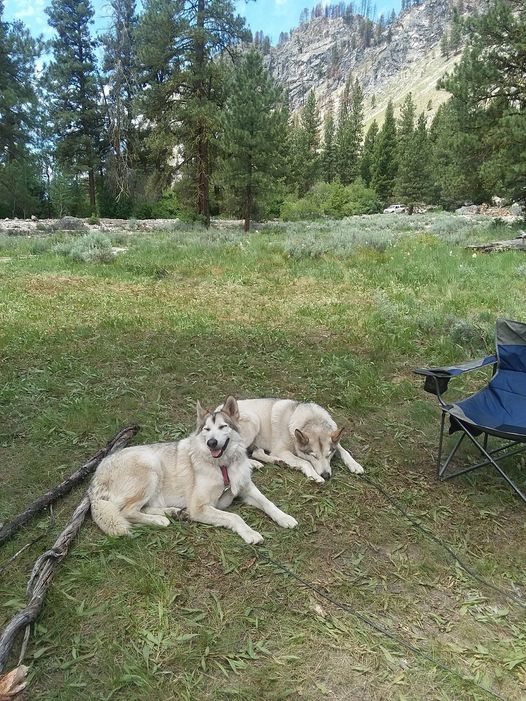 One of our times camping here, I went to the bathroom and left the boys tied up in camp. They soon started howling for me. The camper who was next to us (a couple in a camper) yelled at my boys to shut up. It seems this guy wasn’t very friendly. We didn’t talk at all. He thought he needed to carry a fire arm on his waste in a campground. It is legal to do so, but very seldom necessary. Most people enjoy hearing the boys howling, and they only do it for a short time.